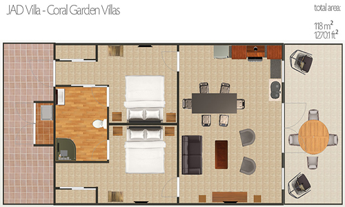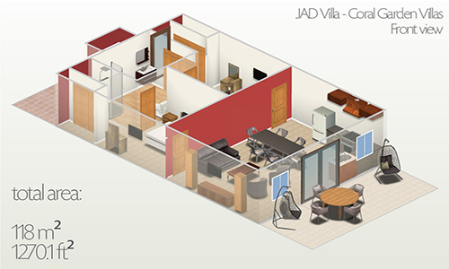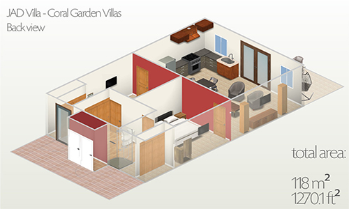 These cosy villas are situated at Kaya Finlandia 7, Playa Pariba, Bonaire. The villas are completely furnished and have:
