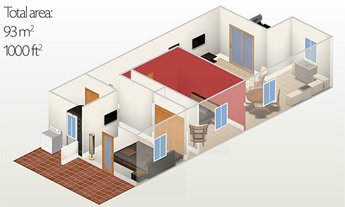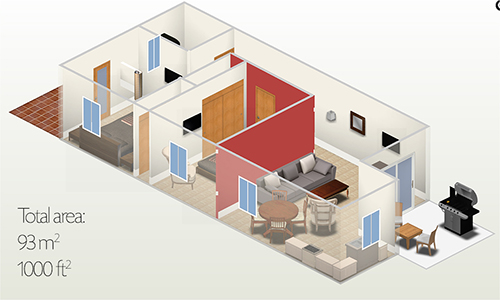 - 1 king size bed (in the main room, can split in 2 individual beds)